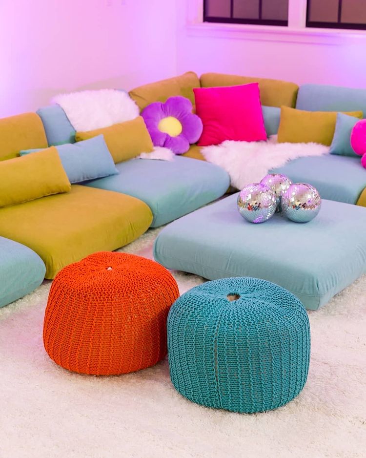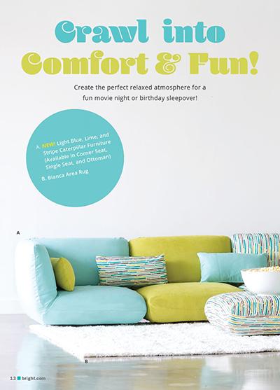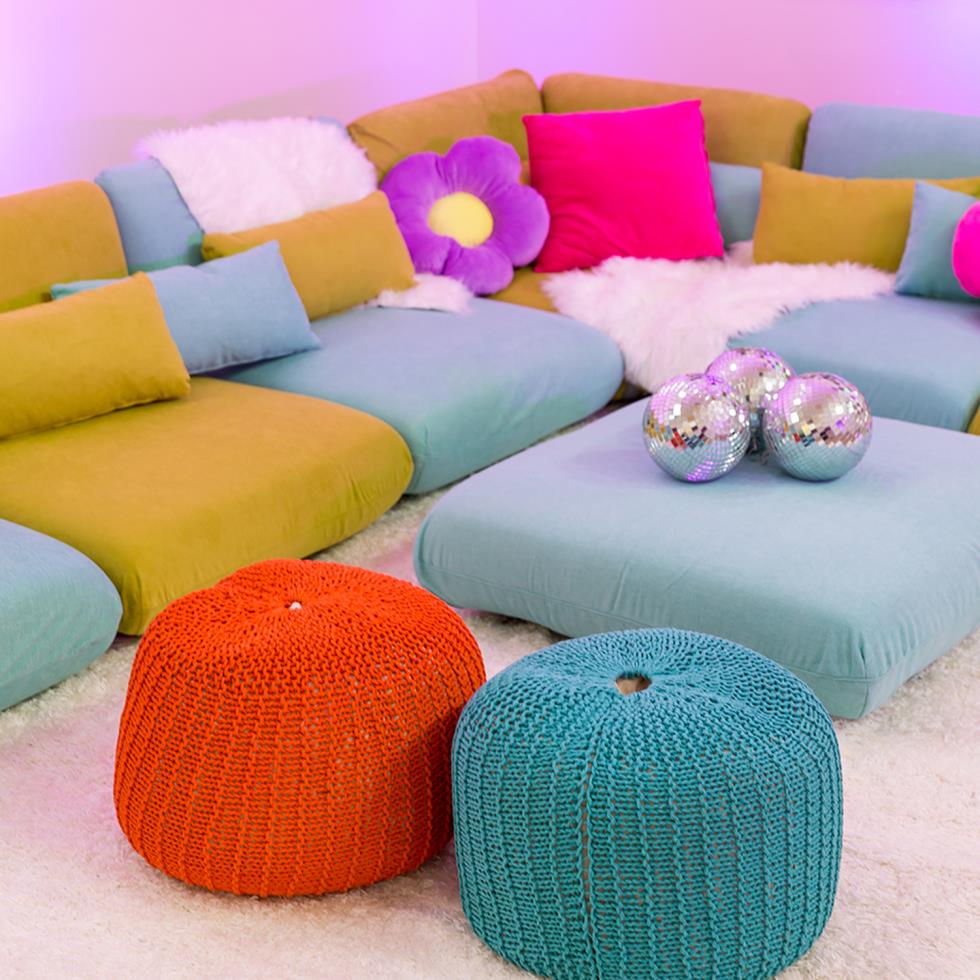 Liven up and chill out your gathering with COLOR! Our Lime and Light Blue Caterpillar Seat and Corner, Light Blue Caterpillar Ottoman, and Orange and Turquoise...
