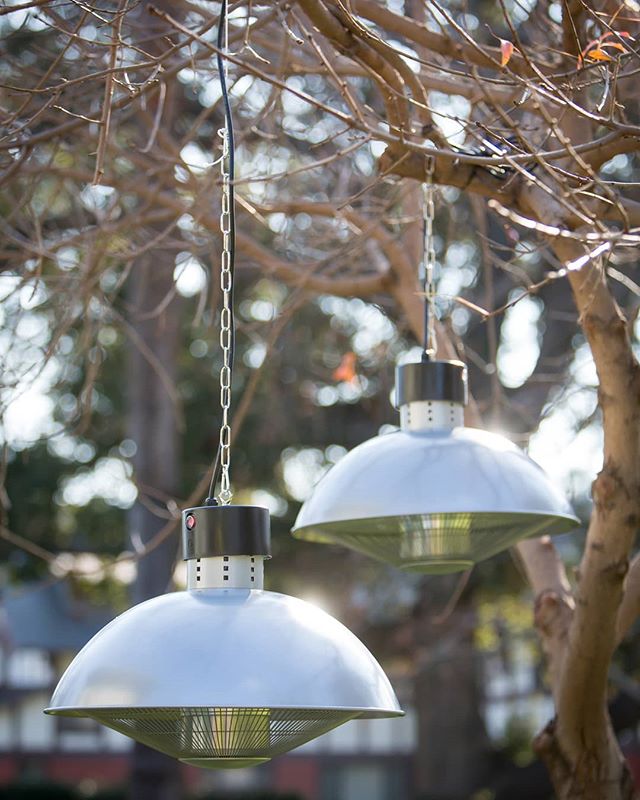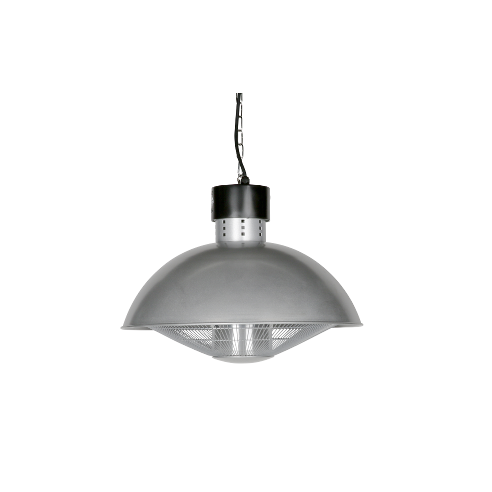 Our Luke 20" diameter hanging heater pendant includes 3 feet of chain for easy installation. The Luke must be installed a minimum of 20" from the ceiling and at least 10' from sidewalls. Requiring a dedicated 15-amp circuit, each has a toggle on-off switch on one side, a touch sensor on the opposite side to adjust the heat, and a remote to adjust the heat from the ground after installation.