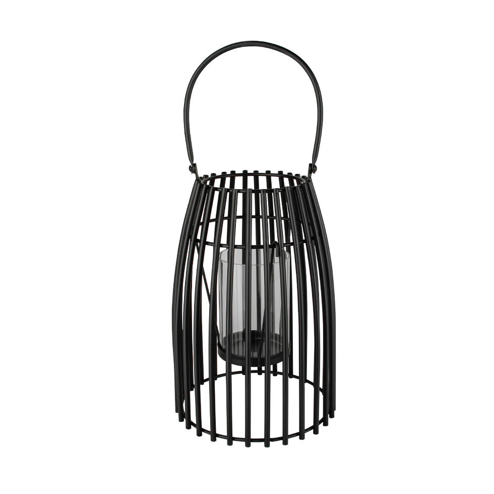 The Luxemburg lanterns are made of iron with a metallic black finish. Inside is a glass candle holder with a “D” shaped handle. Step up your lighting game with these sophisticated lanterns that add to your décor indoors or outdoors. Available in two sizes. Each lantern rented separately so you can mix and match sizes to suit your style. Height is from bottom to top of handle.