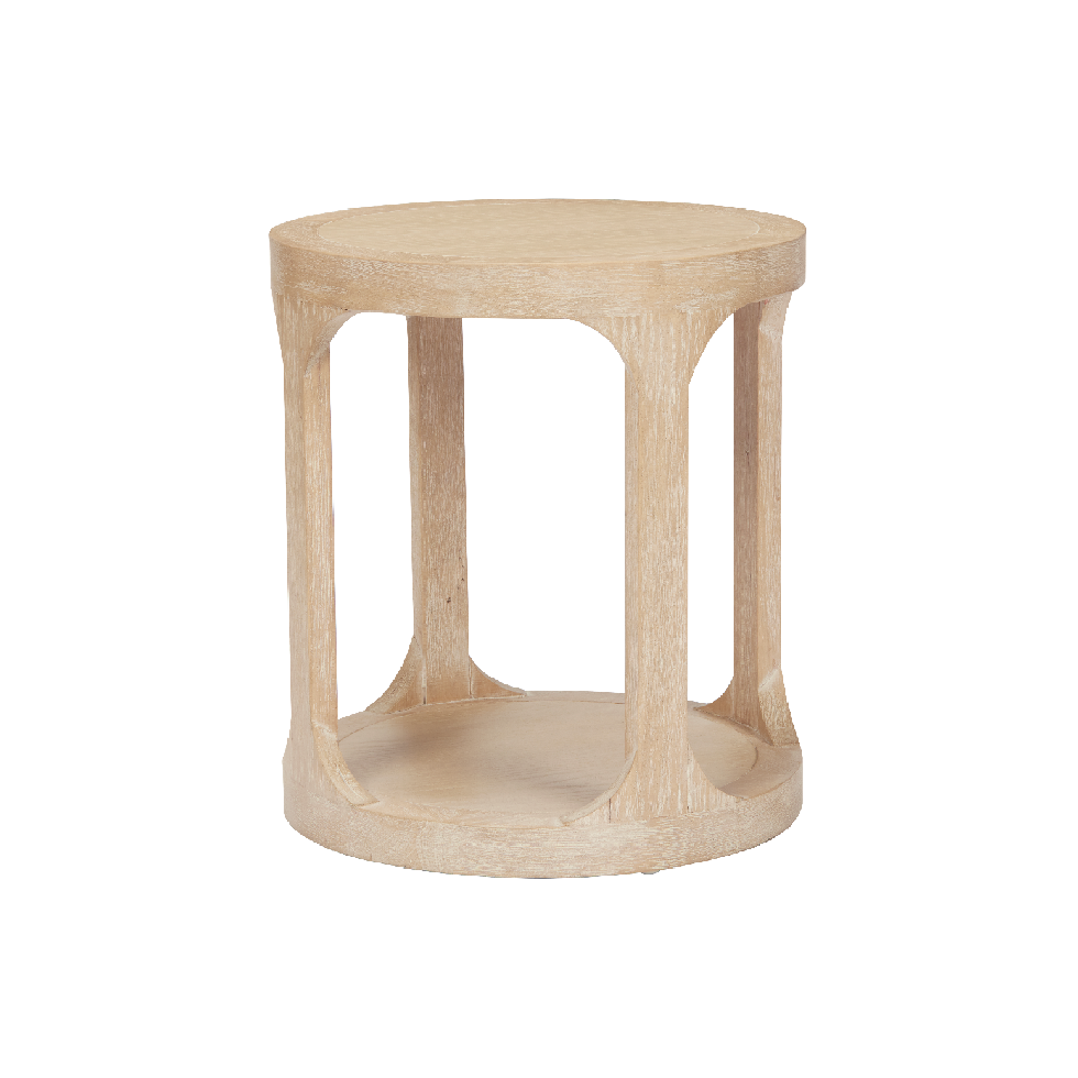 Upgrade your lounge area with our smooth wood Malibu end table. Its minimalist round design and natural finish will enhance both elegant and rustic settings. From indoor to outdoor events, this versatile table fits in endlessly, adding a touch of modern sophistication.