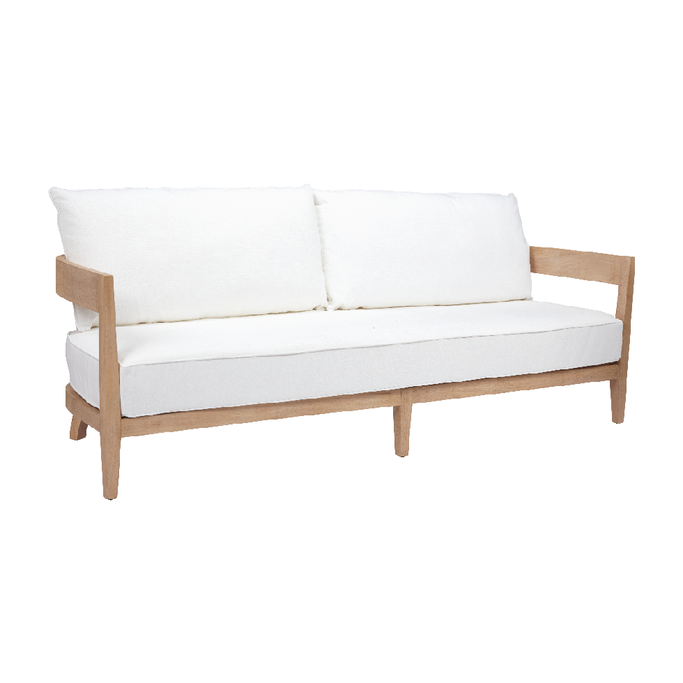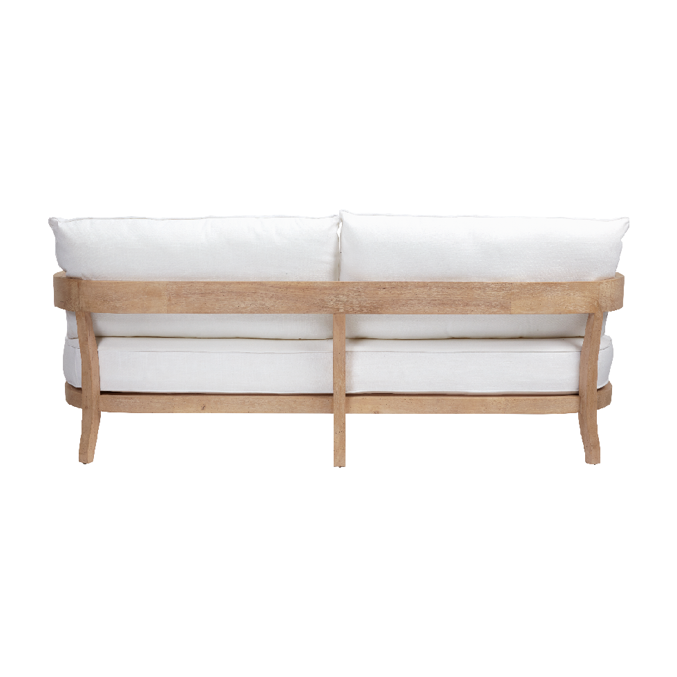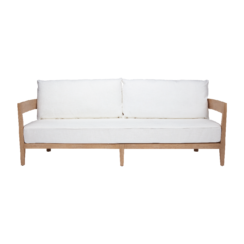 The Malibu sofa is a modern and sophisticated Scandi-inspired furniture piece. Its simplistic lines, curvaceous tub-shaped back, and solid natural, wood frame create a stylish grouping for conversation. With deep-padded, white linen seats that offer superior comfort, this versatile collection seamlessly complements both outdoor and indoor spaces, adding a touch of timeless elegance to your event.