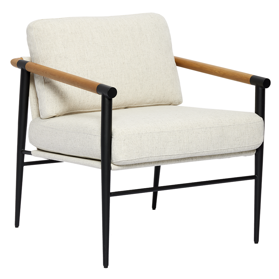 Enhance your event with Marcel, a side chair that effortlessly combines timeless class with modern industrial flair. Featuring slim black steel frames, exposed oak arms, and plush oatmeal linen cushions. Marcel is the perfect choice for creating a sophisticated lounge setting that your guests will love.