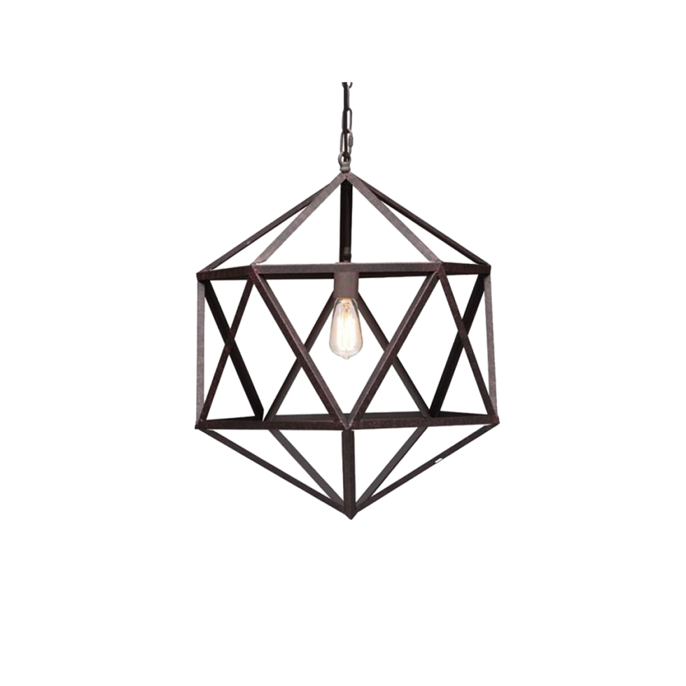 Retro Chic triangular openwork pendant chandelier constructed of sturdy steel in an industrial finish with an aged patina.