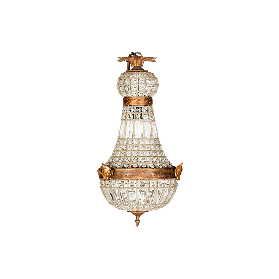 Beautifully decorated oil rubbed bronze and Egyptian crystal chandelier brings a touch of old world charm. Intricately woven band features a florette with embossed leaf crown. Stunning on it's own or hung in groups making a shining impression. Available in two sizes to bring sparkle and warmth to your space.