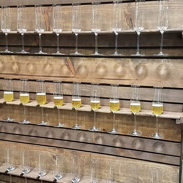 Are the glasses half empty or half full? \ud83e\udd42 Either way can we all agree that this is a lovely, wooden champagne display?