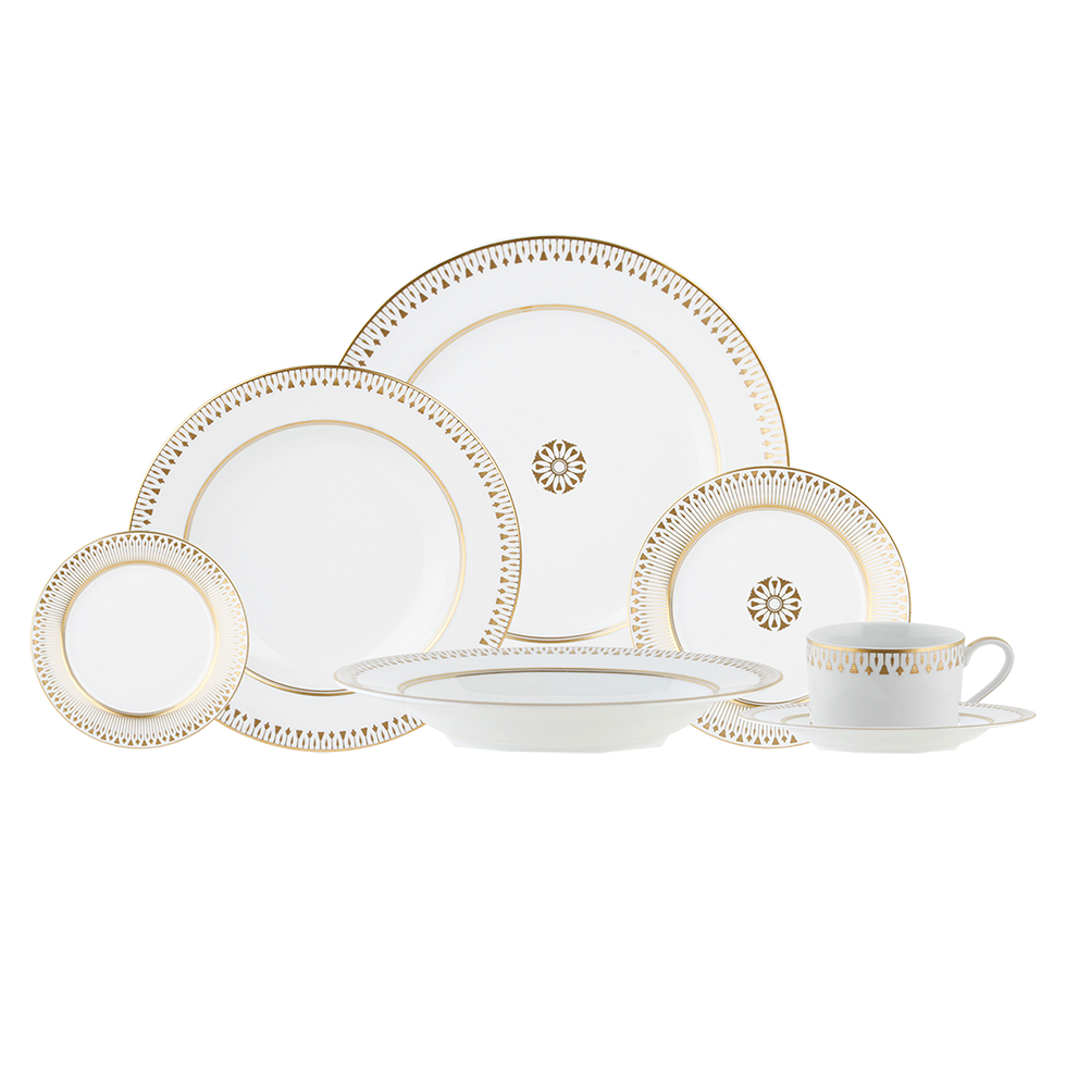 - Plates, bowls, and saucers available in quantities of 5's.
