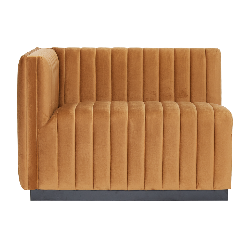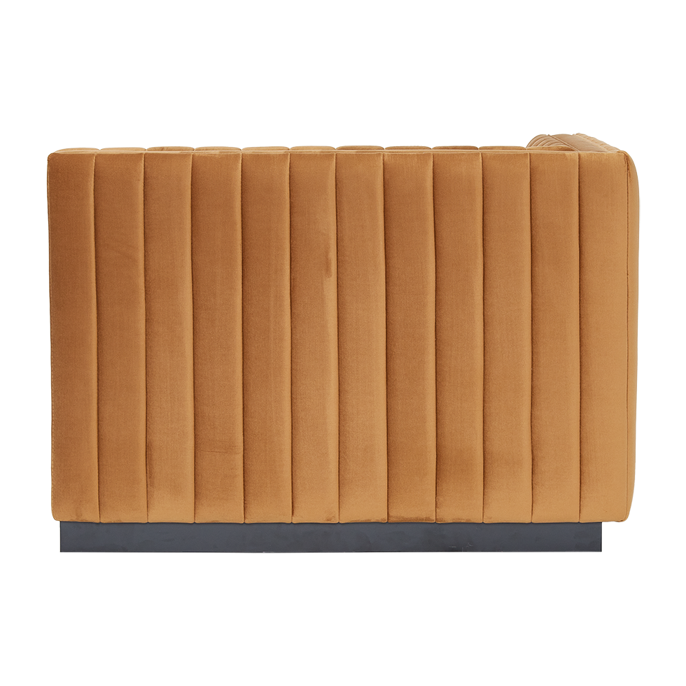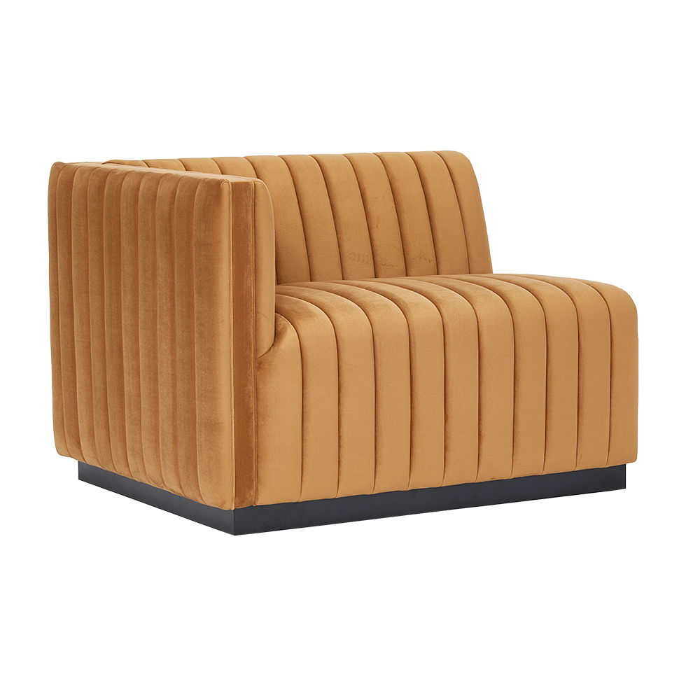Presenting Morris your ultimate event furniture solution. With its versatile design, Morris transforms effortlessly from a stand-alone sofa into a sophisticated long banquette or a sleek sectional, offering unparalleled adaptability to suit your event's unique ambiance. Crafted with sumptuous channel-tufted Carmel velvet upholstery, Morris brings a touch of luxury to any setting.