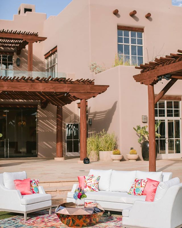 We love how beautifully our Gem Rose Gold Coffee Table pairs with the blush exterior of the @fourseasons in Scottsdale!