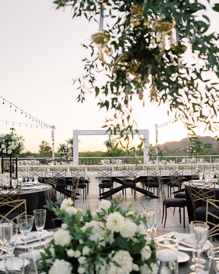 @yourjubileeweddings designed a dream night at the stunning @mountainshadowsaz featuring our Starburst tables and @chameleonchaircollection two-tone fanfare...