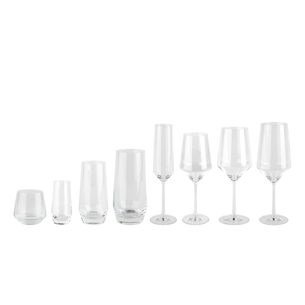 Opus stemware brings elegant styling to any gathering and table setting. Sophisticated and sleek angular design tapers to a peak. Sharp accents draw your attention to its narrow stem, achieving a lustrous profile.