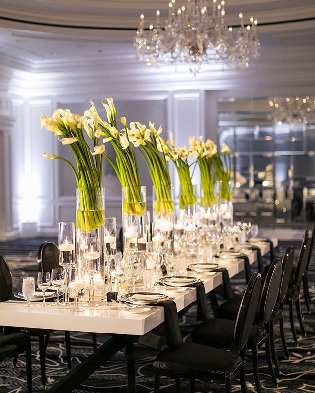 Our Black Bright China, Del Mar Flatware, and Boxwood Lamour Napkin set a distinctive table.
