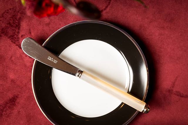 A closeup of our Del Mar butterknife in shimmery ivory and silver .
