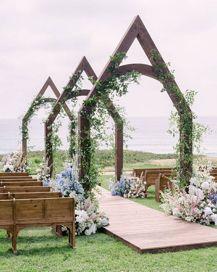 Yes!!! We love custom work! Thrilled to help Haute Fetes create Custom Ceremony Arches, Aisle Flooring, Reception Structures, and Trellis Placecard/Backdrop...