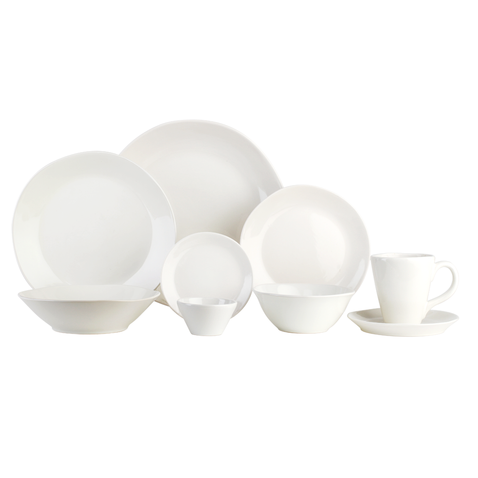 Chic and minimalistic cream stoneware is generously oversized with a high gloss finish.