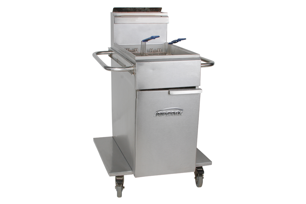 Fryer features stainless steel front, door, sides, and basket hanger. It provides a large heat transfer area that rapidly heats oil to the desired temperature. The three tube heating system heats the oil quickly resulting in less oil absorption and a better tasting product.