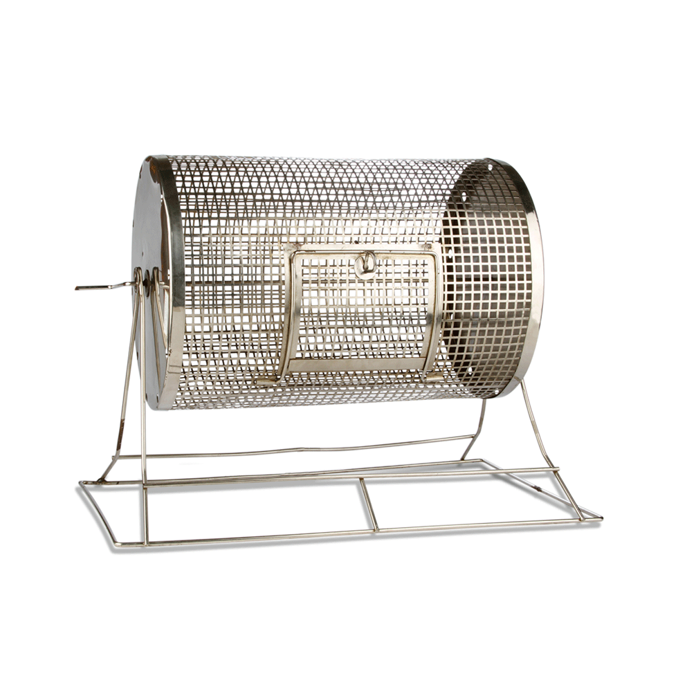 This large raffle drum is made of plated steel. The raffle drum, including its sturdy base is 25"w x 16"d, and stands 18" high. Each drawing box features a 5-3/4" wide drop slot and an easy-grip polished wooden turning handle. The 6"w x 6"d trap door is centered on the raffle ticket drum and is reliably secured with a durable latch for easily drawing a winner or loading a large volume of tickets.