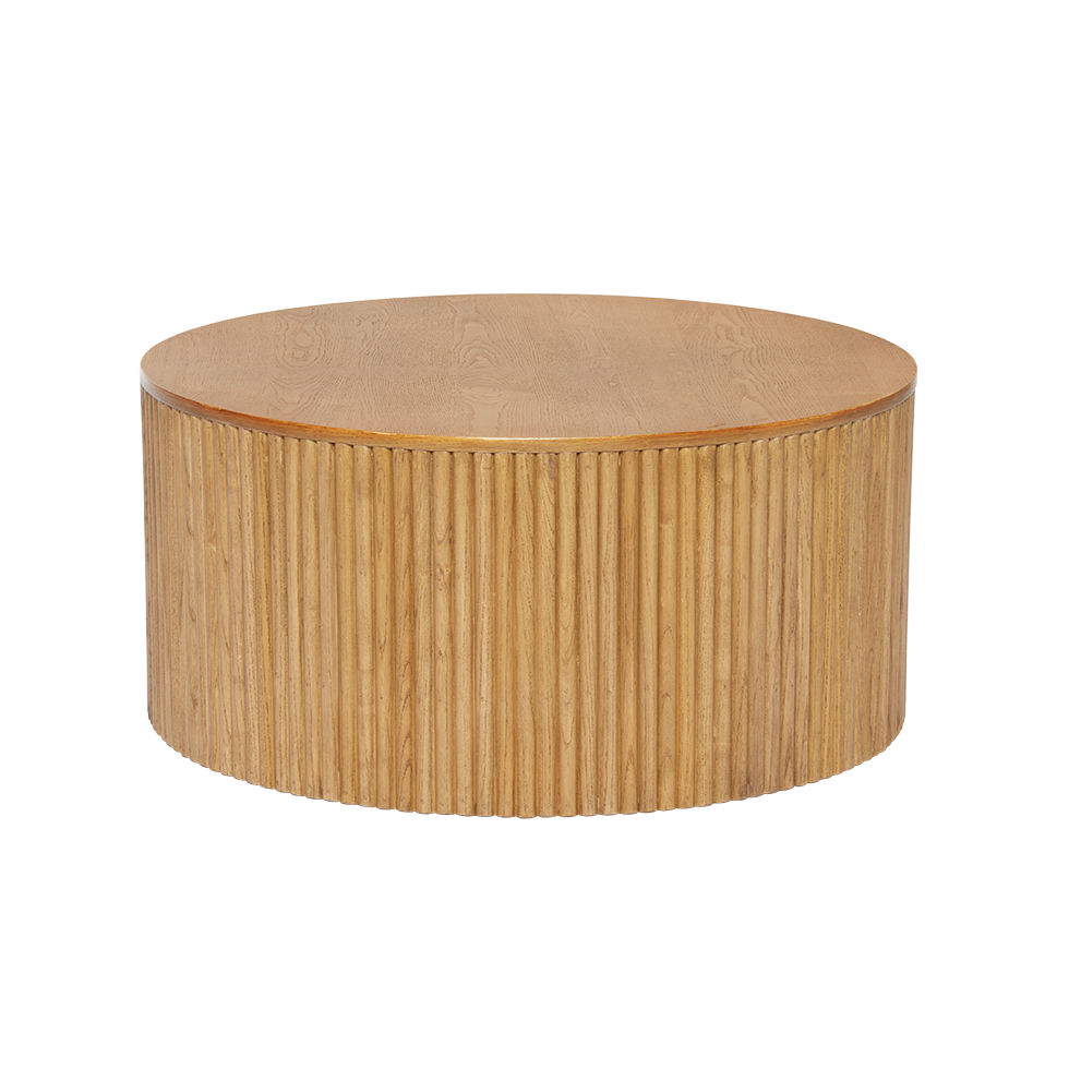 Enhance your event lounge with the striking Ray Coffee Table. Crafted from natural wood, this table radiates chic sophistication with its unique fluted design, bringing a modern, distinctive flair to any setting.