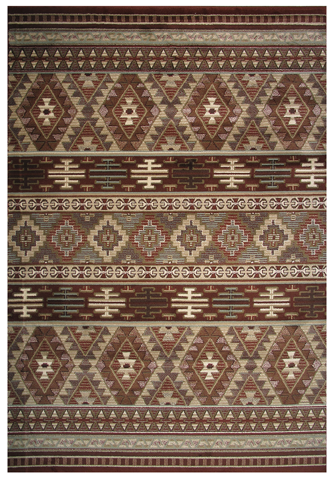 Cream undertones over a dark backdrop blend with an array of tribal, geometric and stripped contemporary designs.