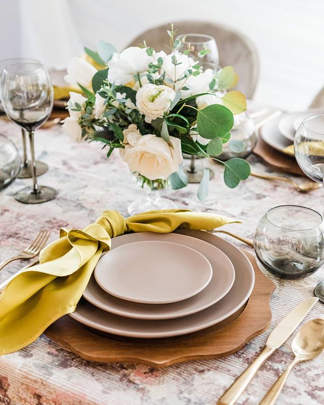 This gorgeous tabletop featuring our new Dark Acacia Valentin Wooden Charger paired with Hepburn Smoke Glassware, Umbria Stoneware, and Oro flatware makes...