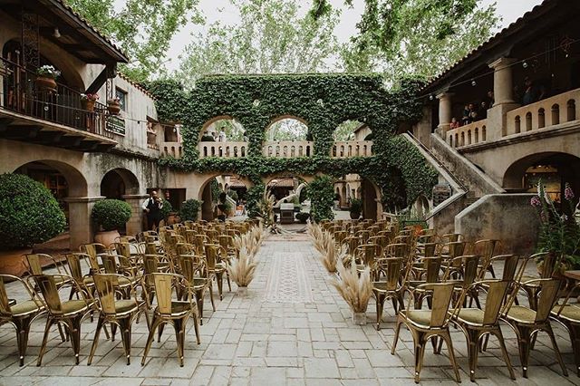 This Wedding Wednesday we reminisce about how our Gold Cafe Chairs added a bit of sparkle to this beautiful ceremony space in Sedona!