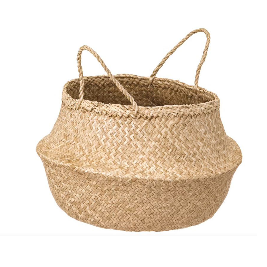 The Woven Seagrass Basket is perfect to hold plants or use as a display basket.