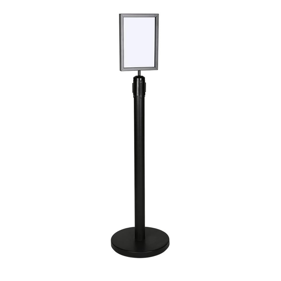 SIGN HOLDER ON BLACK RETRACTABLE STANCHION