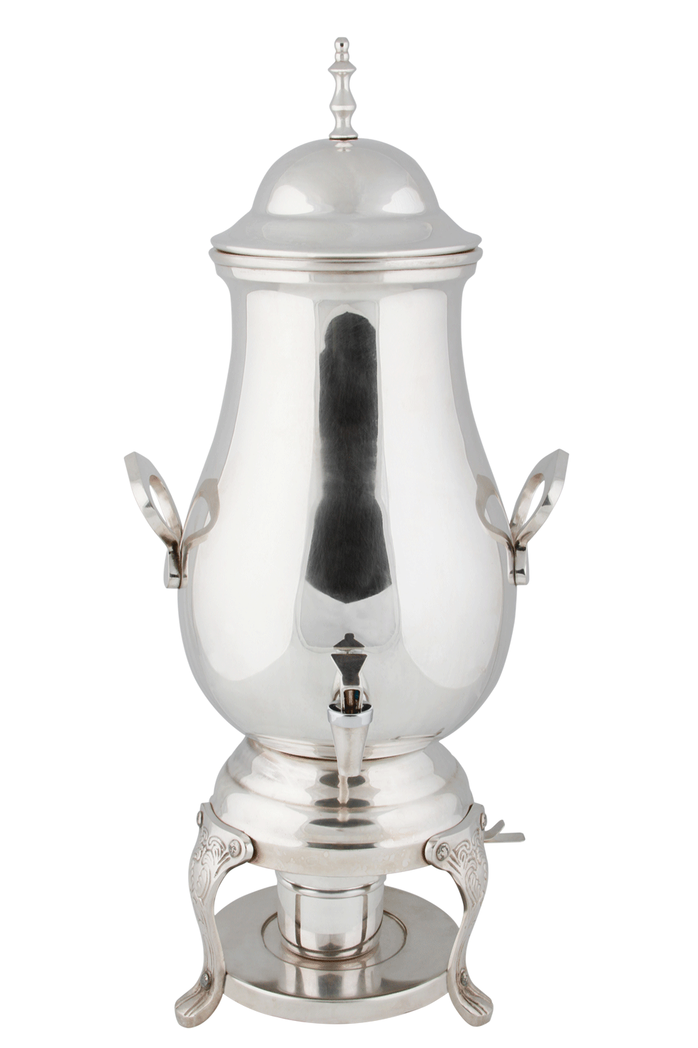 Elegant silver-plated coffee urn is the perfect complement to cake. Urn features ornate embellishments, creating a truly stunning look. Mix and matche with classic and contemporary table settings to creat a truly unique presentation. This urn can comfortably hold 50 cups of fresh brewed coffee and its large handles make it easy to transport.