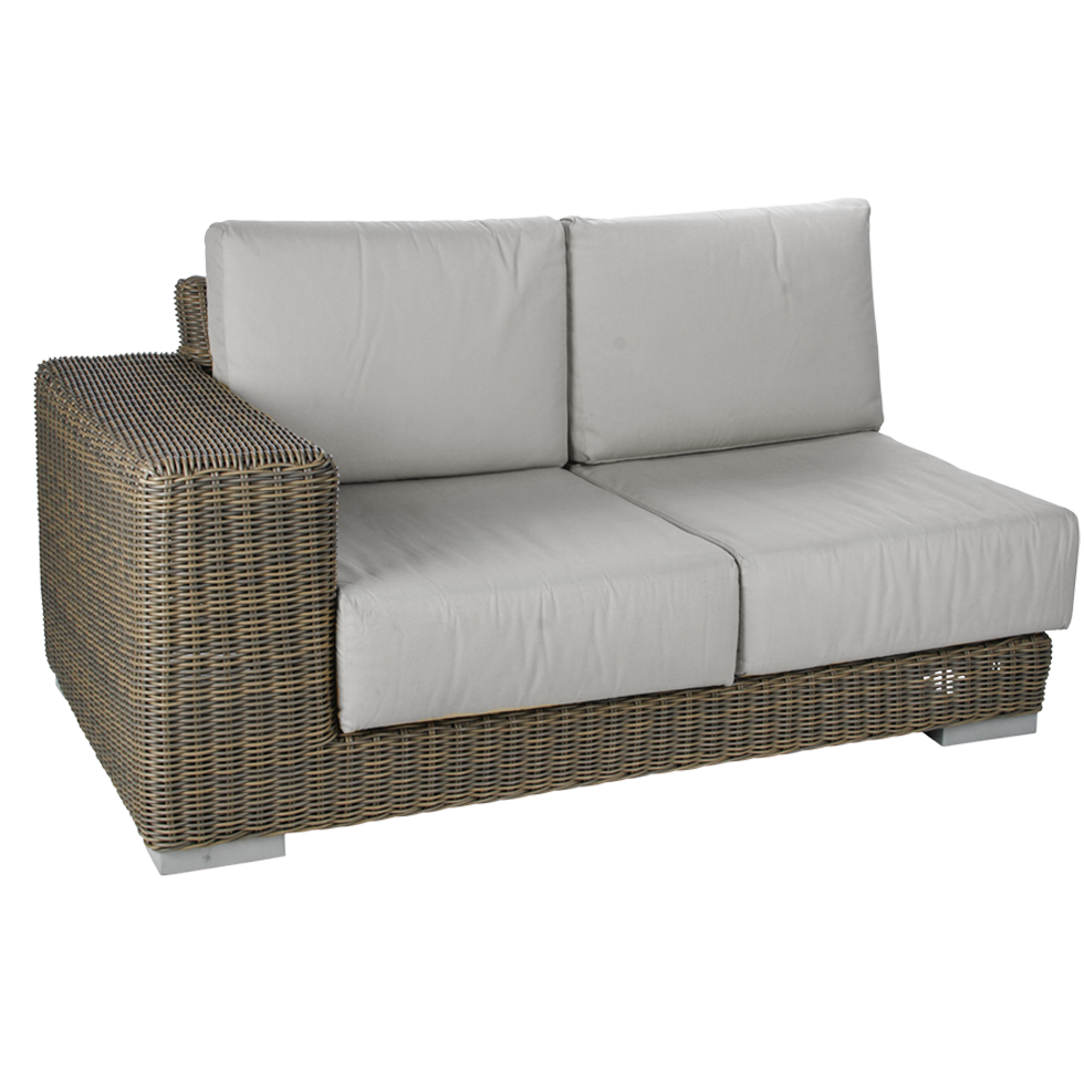 Create the perfect outdoor lounge area with our Sonoma Collection, including this double chair with armrest, single chair, corner chair and chaise. Simply sink in and relax with true deep seating featuring plush 5-inch thick cushions. Easily configure the ideal seating group by mixing and matching pieces for the perfect relaxation space. Add some accent tables, lanterns and toss accent pillows for an additional pop of color. Brown/Charcoal woven wicker over a strong aluminum frame.