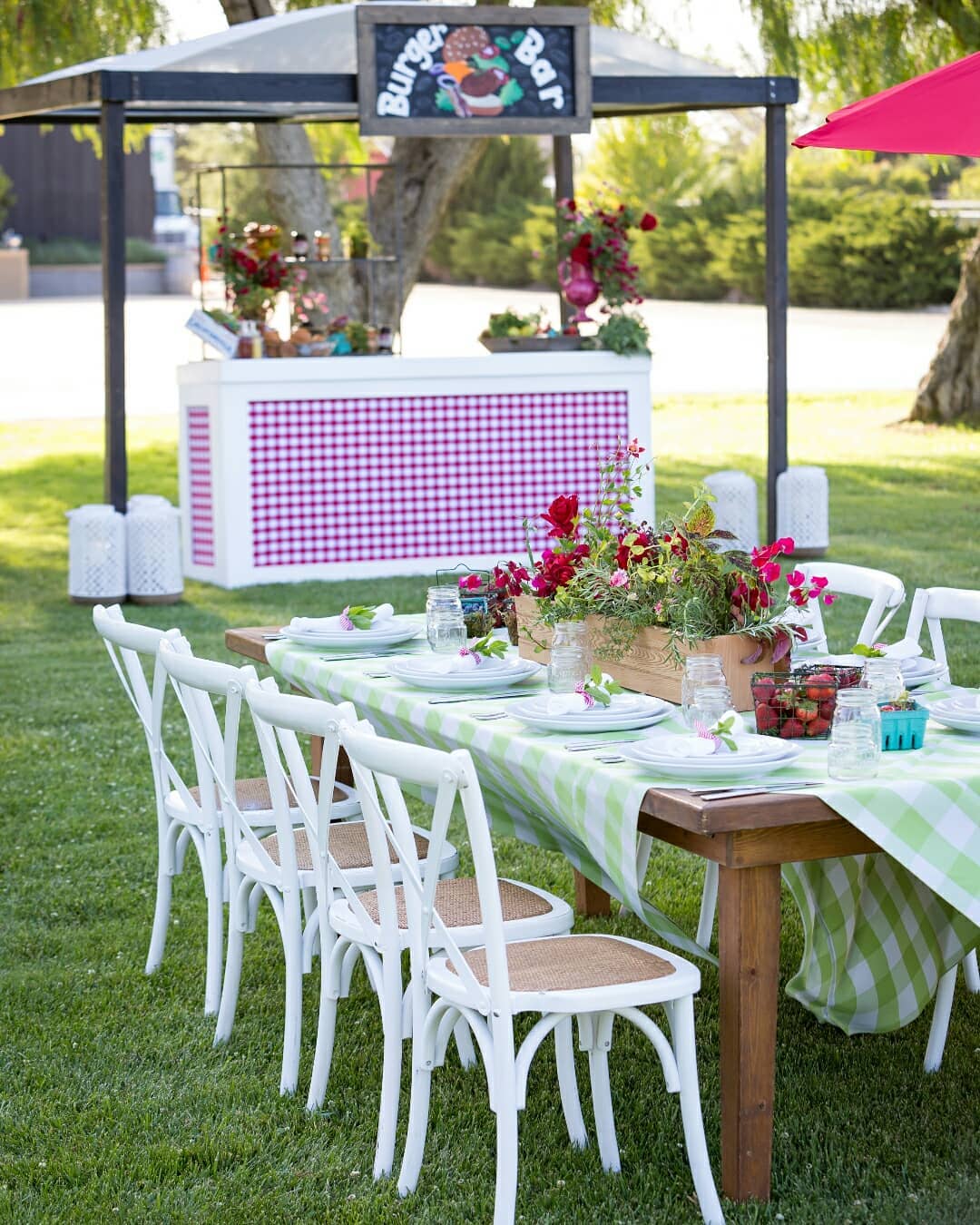 Mix and match your picnic aesthetic with colors that compliment RED. Our White Distressed Bistro Chair and Picnic Kiwi Linen enhance the texture of your...