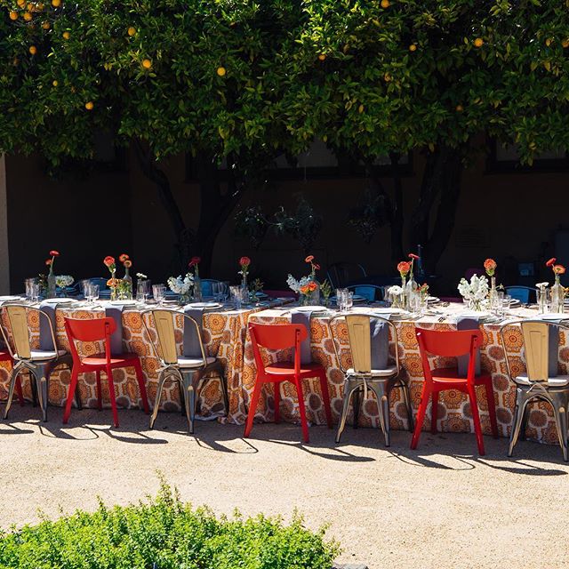 Loving this mix-and-match approach for this farm table setup utilizing our caf\u00e9 chairs and salsa-red Soho chairs! Bellissimo!!, created_time