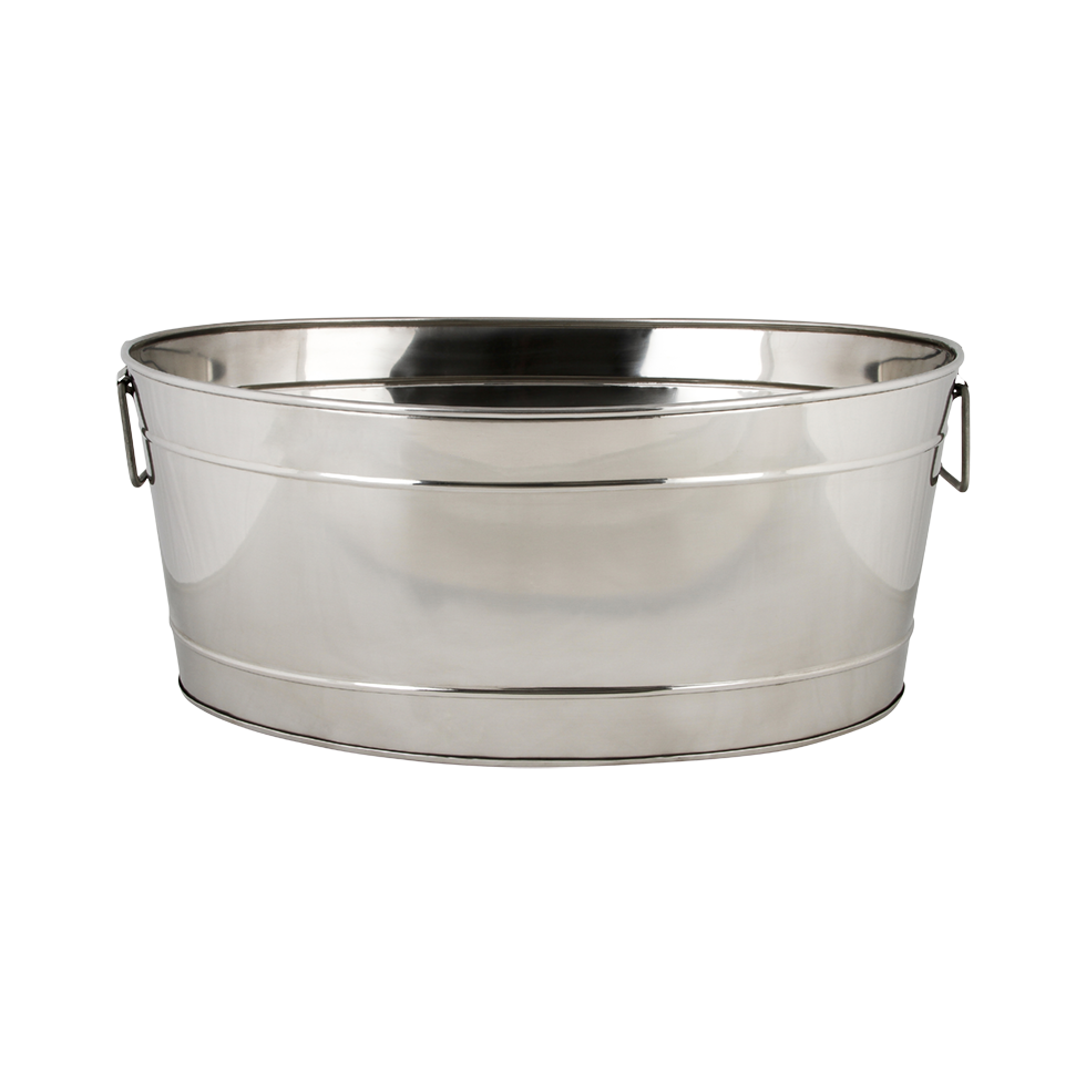 This oval tub adds a simple, classic touch to any event. Keep bottled beverages, soda or beer on ice. The all-open design allows for plenty of room and encourages guests to reach in and grab a refreshing beverage. It's handles allow for easy transportation and compliments the decorative design.