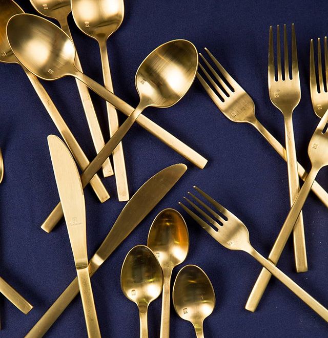 Our Gold Oscar flatware always makes an elegant statement! · · ·