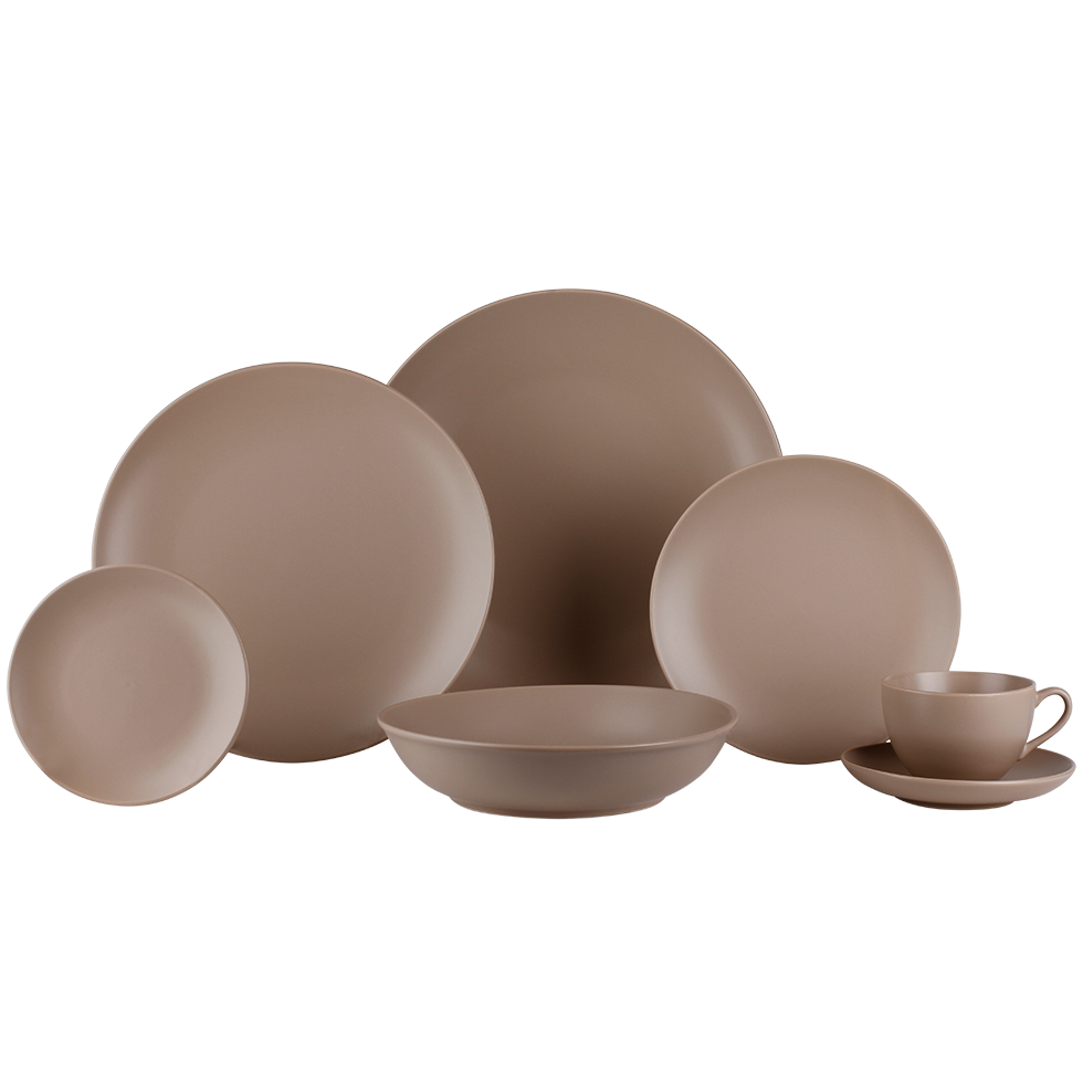 Handmade stoneware in a warm and earthy taupe/tan with a modern matte glaze. Our Umbria stoneware embraces elegant shapes and organic, freeform rims.