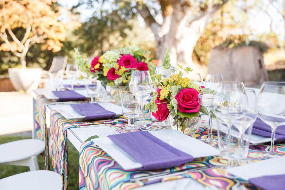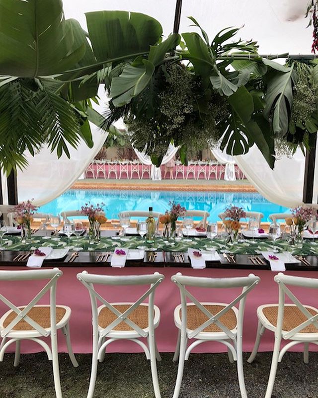 Pops of tropical color against white-and-shade sail cabanas delicately provided shelter from the sun above! What an exquisite design for the Garden Tour...