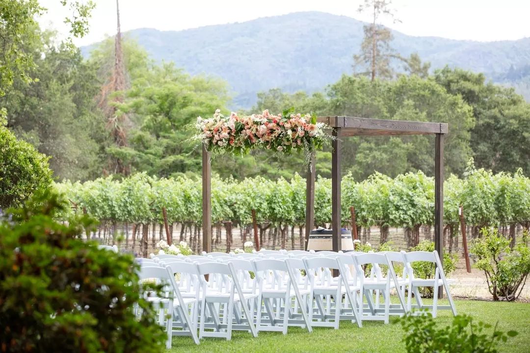 Creating ceremony magic in the vineyard with our Resin White Folding Chair & #10024;
