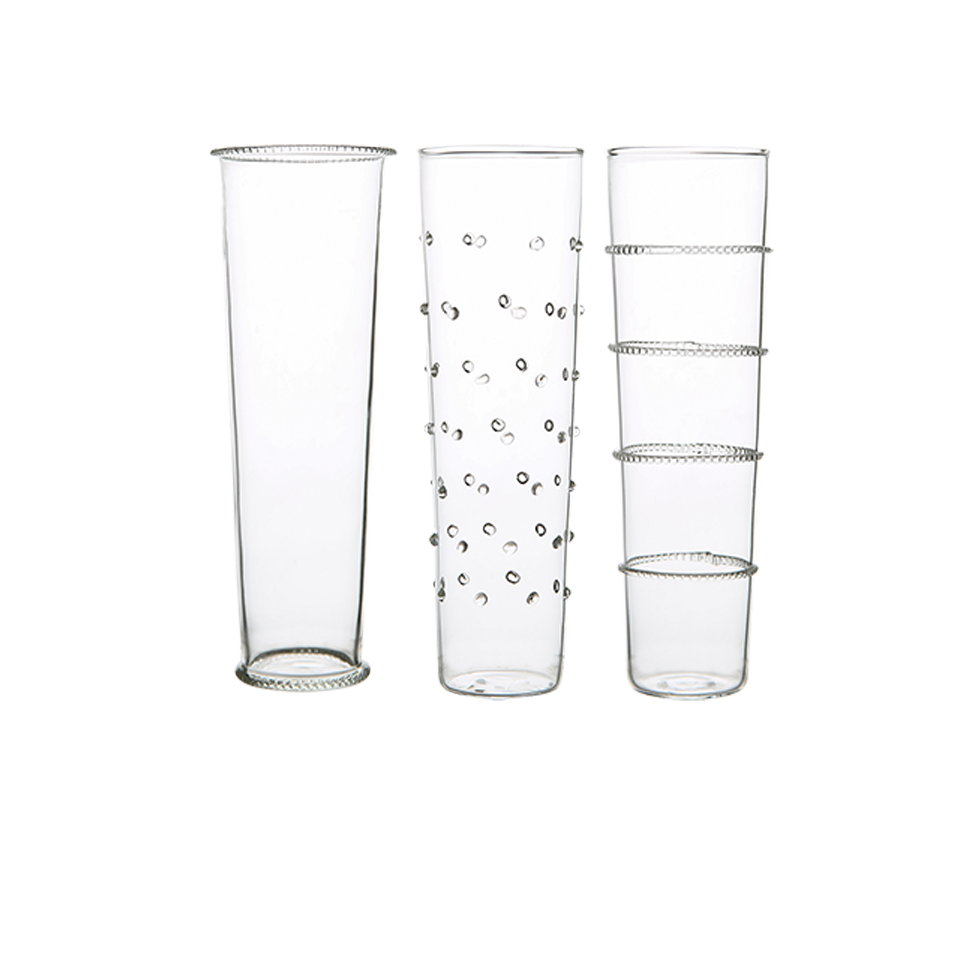 Stemless champagne flutes are modern, spontaneous and unexpected! Beaded Rim, Dots or Ropes make this a great choice to serve a signature drink or champagne.