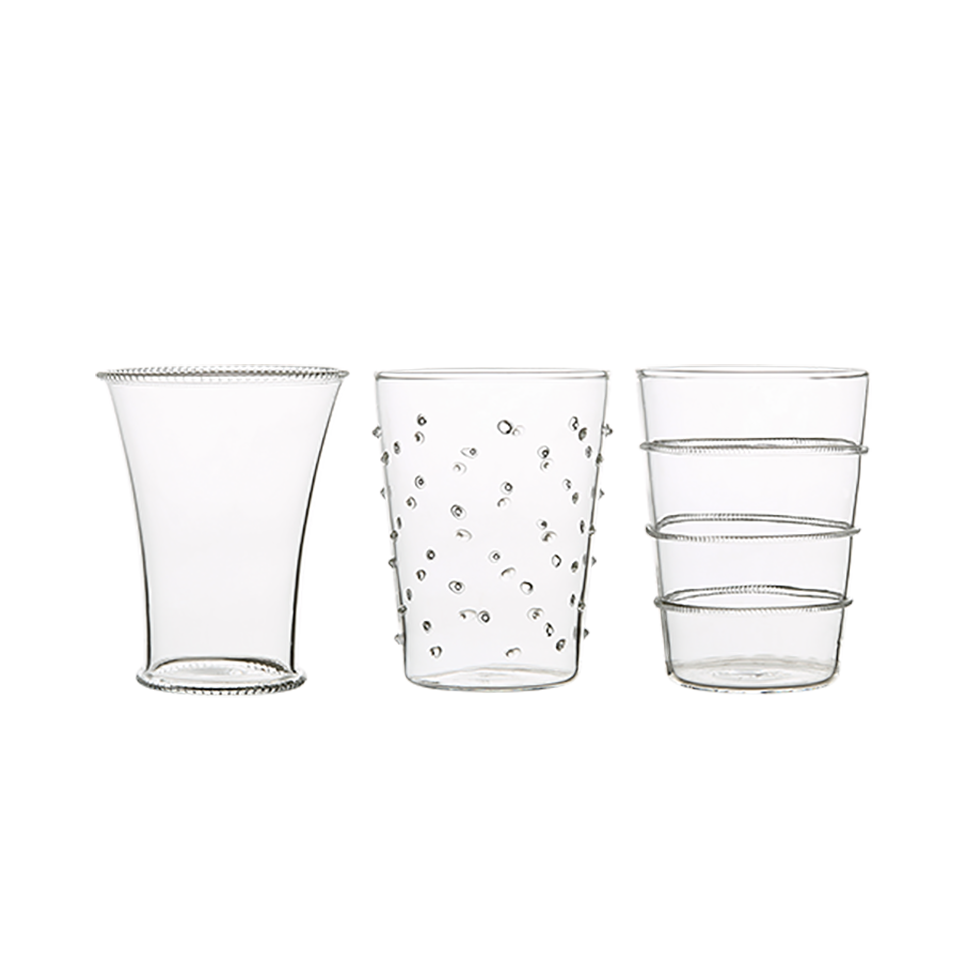 Serve wine, soft drinks, water or a signature cocktail in these incredibly light tumblers. Choose from a Beaded Rim, delicate Dots or Rope pattern for a fun, unique glass.