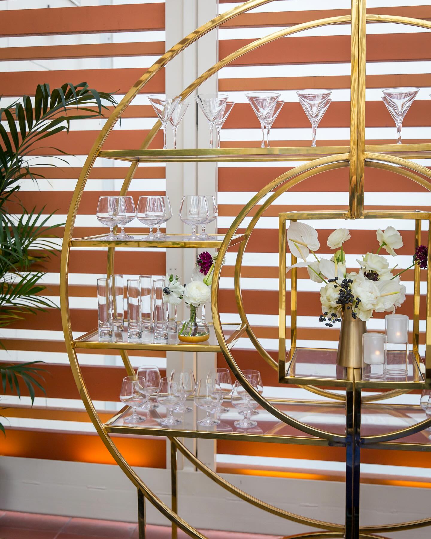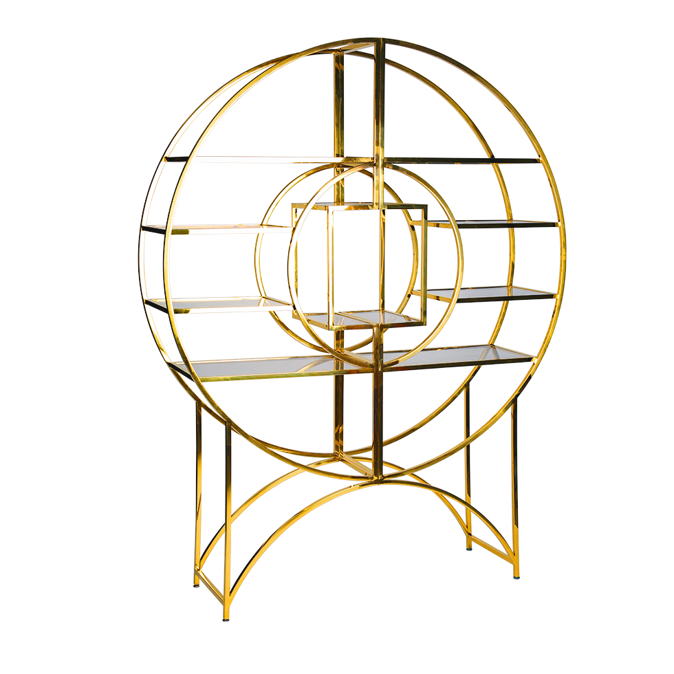 Art Deco elegance defies the passage of time as our Veronique Back Bar confirms. Sleek, geometric gold finishes enhance the multi-tiered shelves and grand scale.