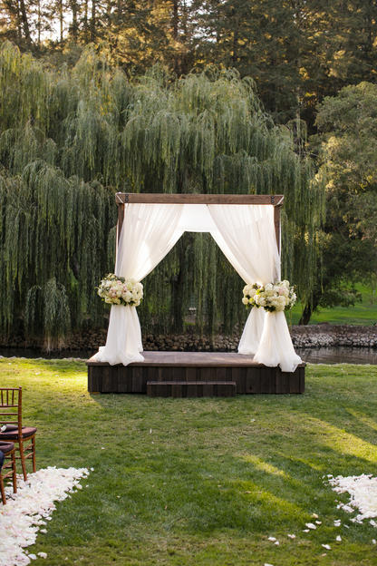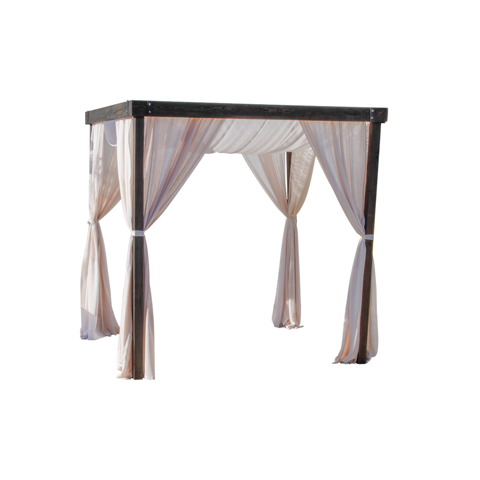 Ideal for larger ceremonies and lounge setups, the Vineyard Chuppah offers a versatile choice. Link multiple cabanas for a seamless outdoor dining space, while the option to adorn with fabric and decor lets you tailor a rustic or modern aesthetic to elevate the structure's appeal.