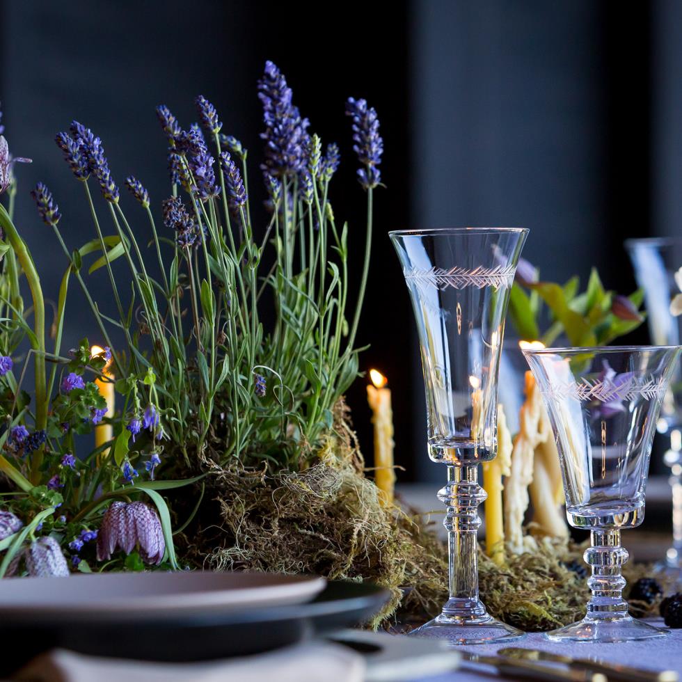 The understated elegance of our Vintage Etched stemware features a delicate chevron pattern, bell shaped bowl and detailed stem.