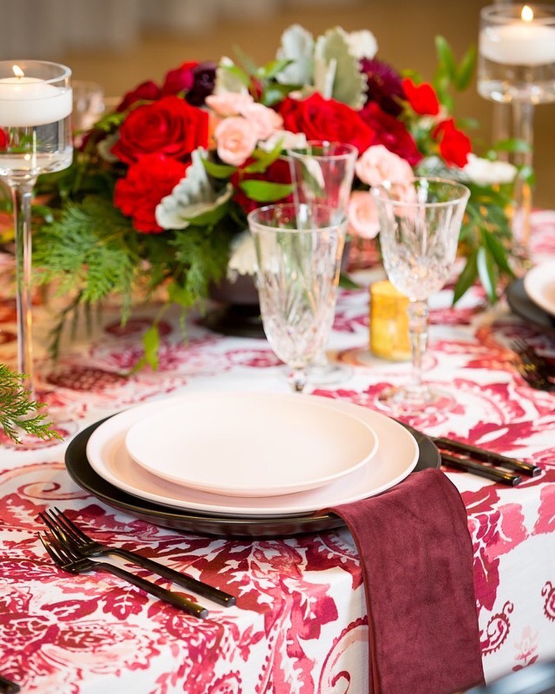 A mid-century modern table, elegantly stained with a rich walnut finish, versatile for both dining and buffet set ups.