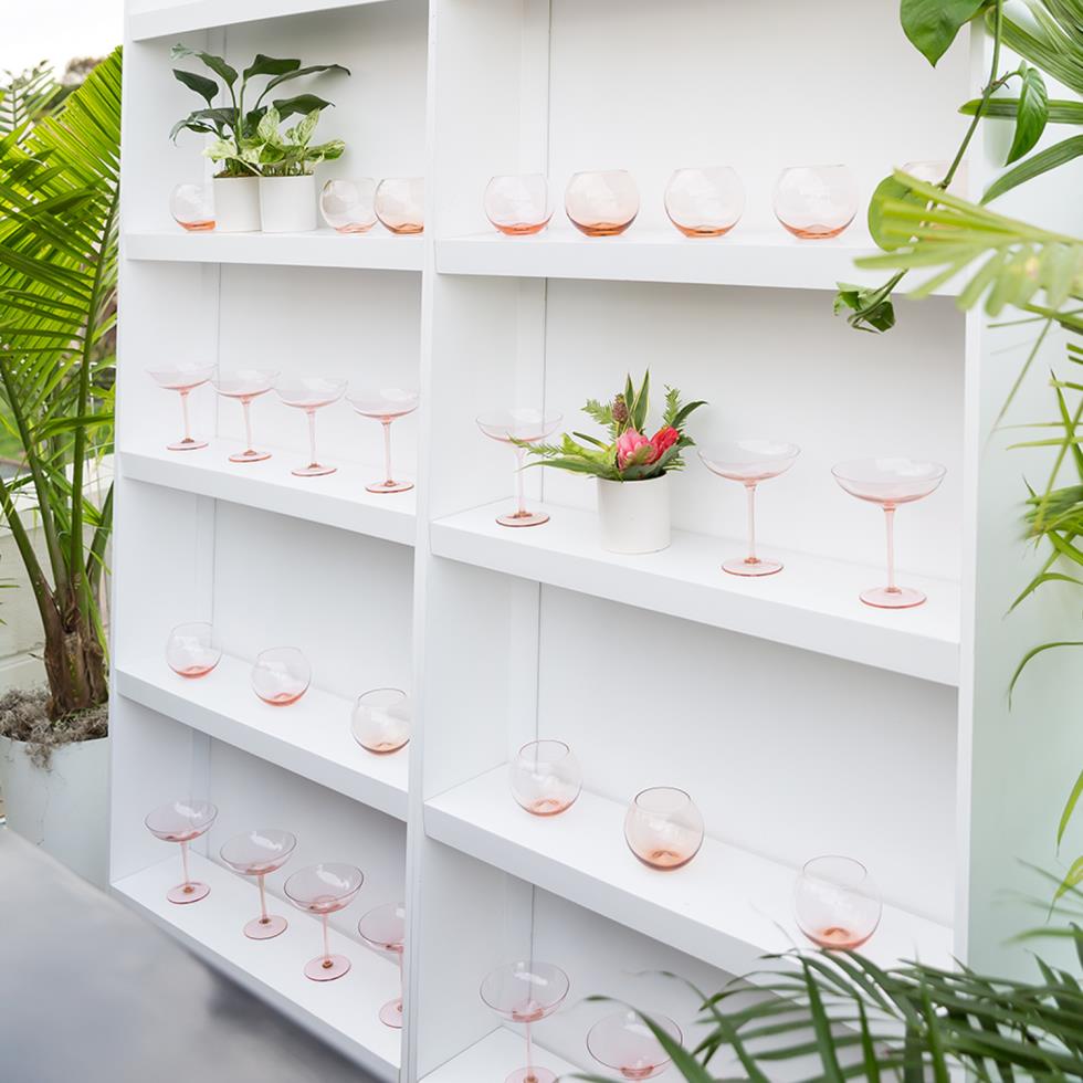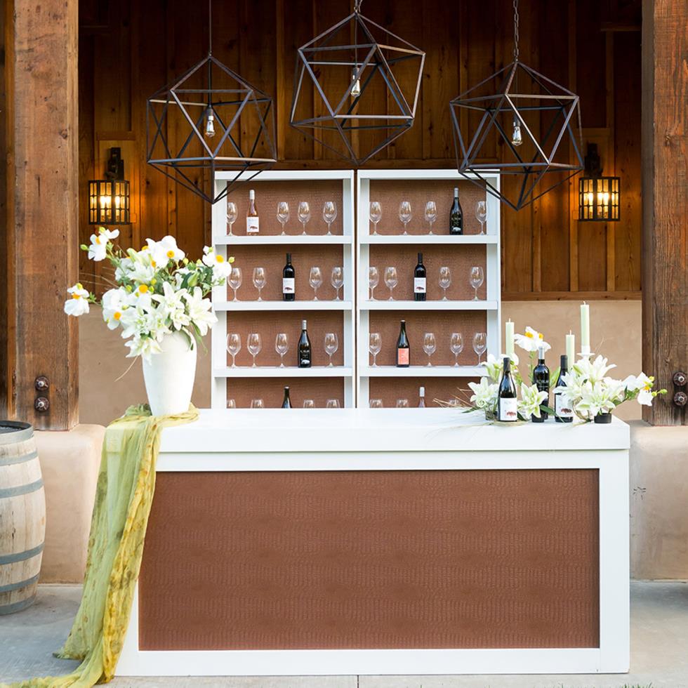 To compliment our Cambio bar line, we are introducing a unique bar back to match. The back of the shelves can be customized. Want to highlight your logo. Add a custom color, ask your Event Consultant or Event Director. Wood bar back can hold extra glasses, mixes, bottles, cans, decor, etc. Shelves become narrower as the bar back gets taller. Bar back comes in solid white or solid black.