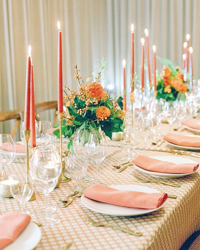 A vibrant orange and green sit down dinner as featured on @martha_weddings.