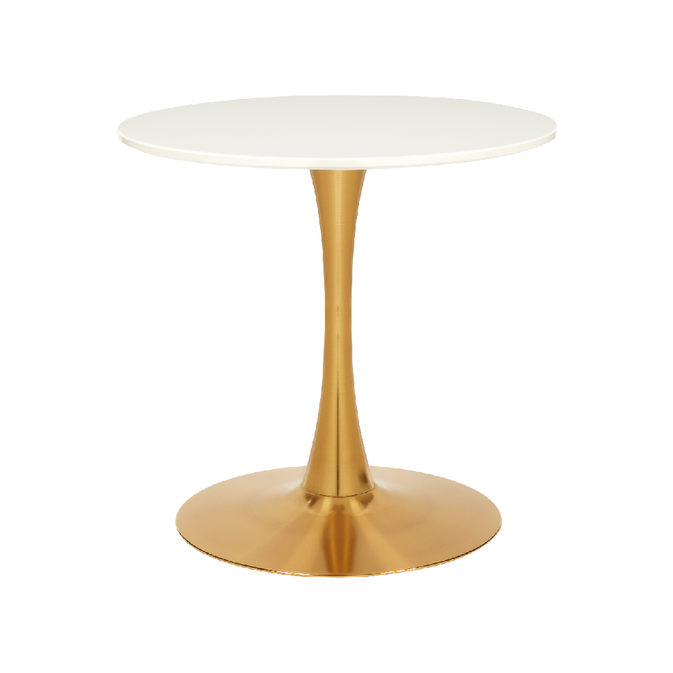 WHITE DANTE COCKTAIL TABLE W/ BRASS PEDESTAL 30" ROUND X 30" H
