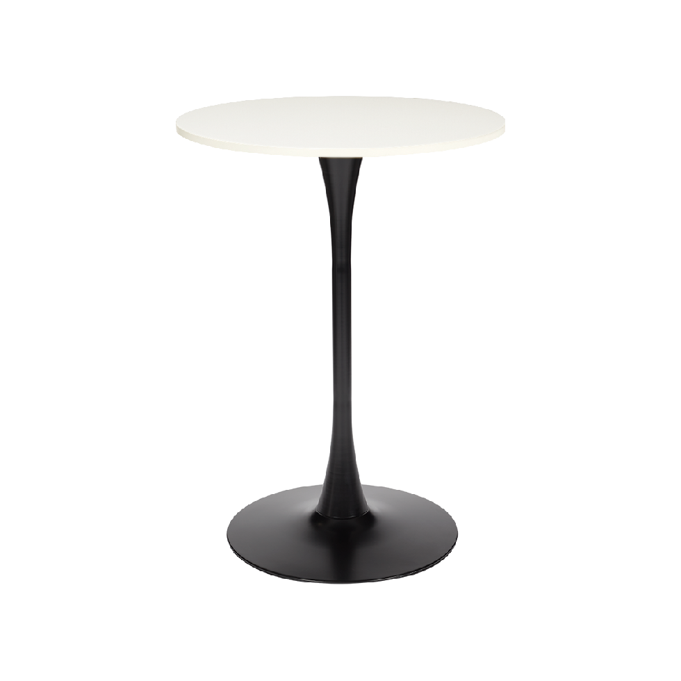 WHITE DANTE TALL COCKTAIL TABLE W/ BLACK PEDESTAL 30" ROUND X 42" H