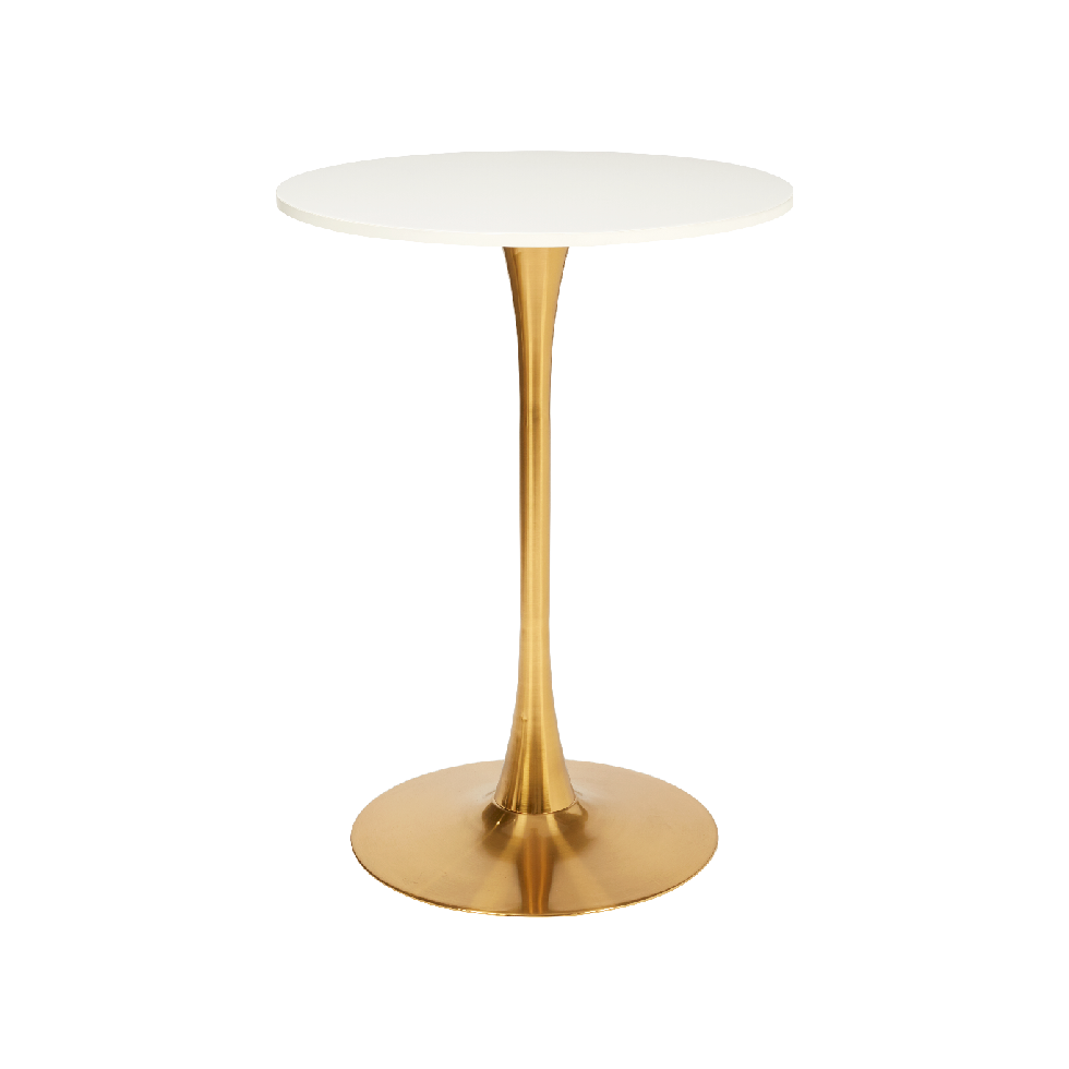 WHITE DANTE TALL COCKTAIL TABLE W/BRASS PEDESTAL 30" ROUND X 42" H