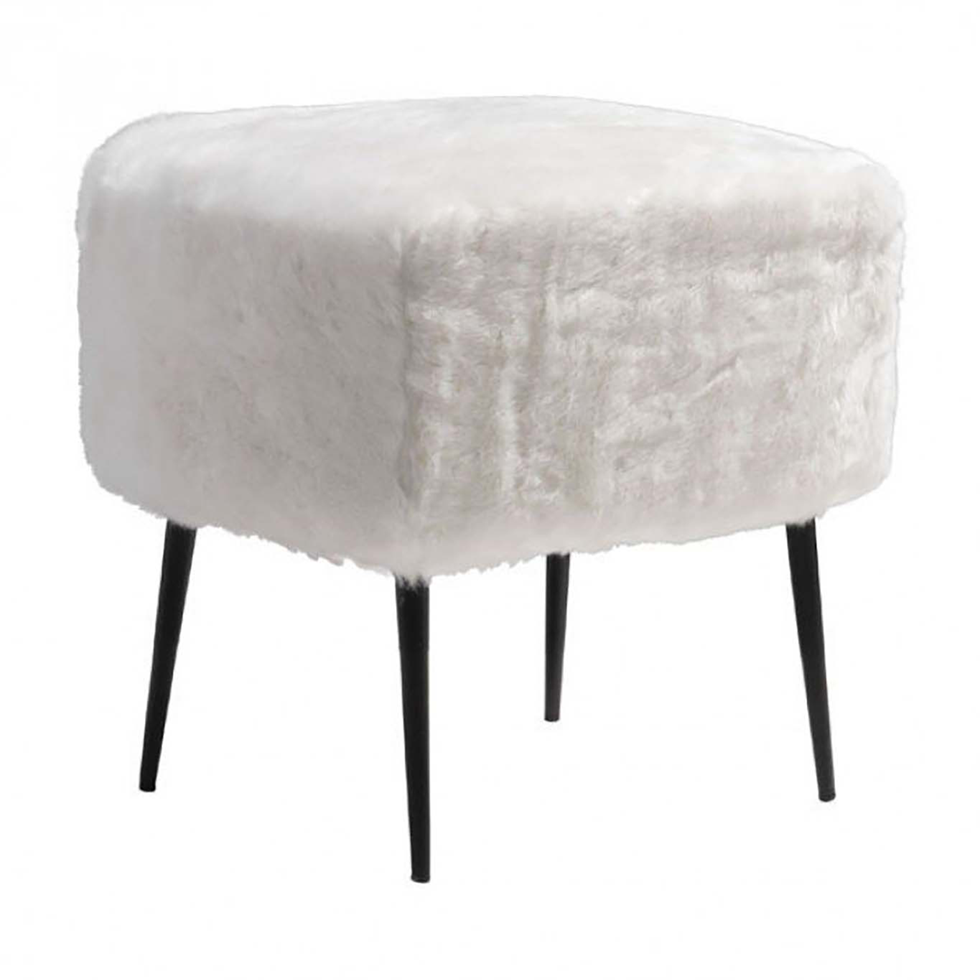 Fun and modern, Mid-Century accent stool is covered in a fuzzy, faux-fur fabric. Slim steel legs with a black powdercoat finish.