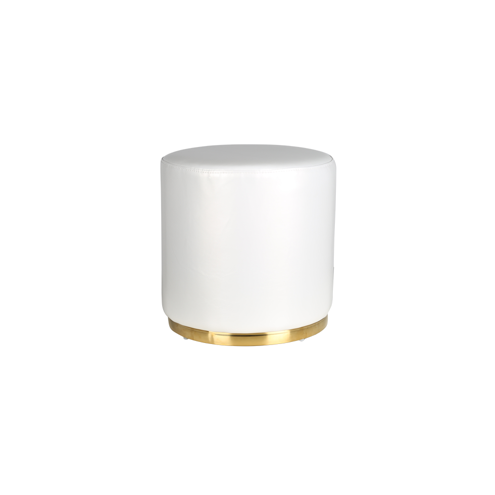 This gorgeous round ottoman is covered in richly colored leatherette and rests on a sublime gold base. Perfect for your formal event or to dress up a casual one. It looks wonderful in multiples lined up in a row or scattered about for extra seating.