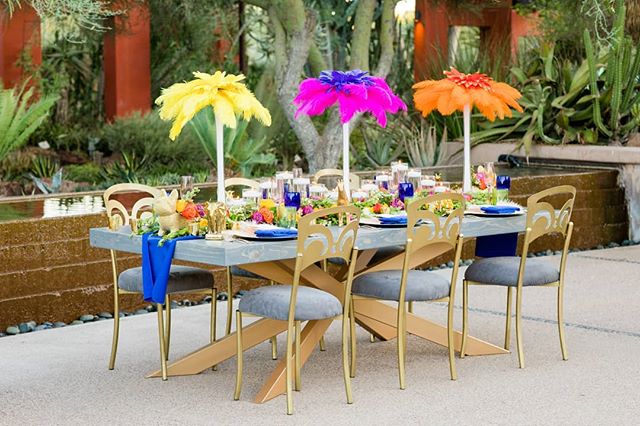 The beautiful gold Fleur de Lis chairs will add an elegant touch to every party. Try pairing them with vibrant accent colors for a more playful event design!