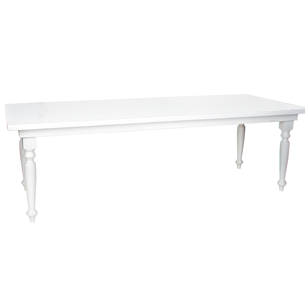 MISSING LOCATION WHITE TUSCAN FARM TABLE 8' X 40" X 30" H Rentals | Bright Rentals